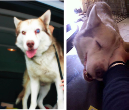 Dino was rescued from San Bernardino shelter where he had been dumped and scheduled to be euthanized on Feb 7th. He was a senior husky, blind in one eye, and it was apparent that one of his eyes would have to be removed. Alley pulled Dino from the shelter, and, with the support of the friends of the rescue, funds were raised, and Anna stepped up to foster and hospice this sweet old husky.