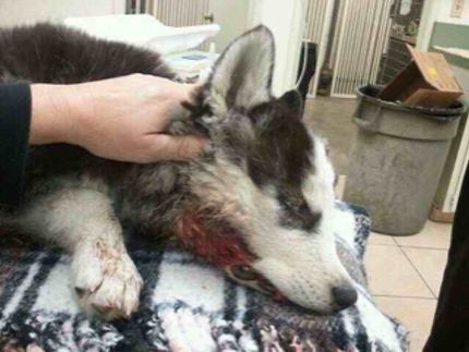 “My new friends and old it is with tears in my eyes that I write this. Our baby Sundance passed away on the operating table at 10:31 pm tonight after a little over 4 hours in surgery and still a long way to go, his little body and heart was unable to handle the stress of the injuries and surgery, they worked at length to get his little heart beating again but were unsuccessful. The surgeons said his injuries were so severe even xrays did not show the extent and in 30 years they had never seen such a vicious attack. The Medical Director and surgeons expressed their sadness and also thanking all of us for trying so hard, I expressed to them the hundreds of family members who now love Sundance and the huge sadness we will all feel tonight. Thank you to everyone who helped pay for his surgery, for me and I hope all of you it was still worth every penny to give him a chance and I would do it all over again and will for Chinook and every injured Husky that comes to me.